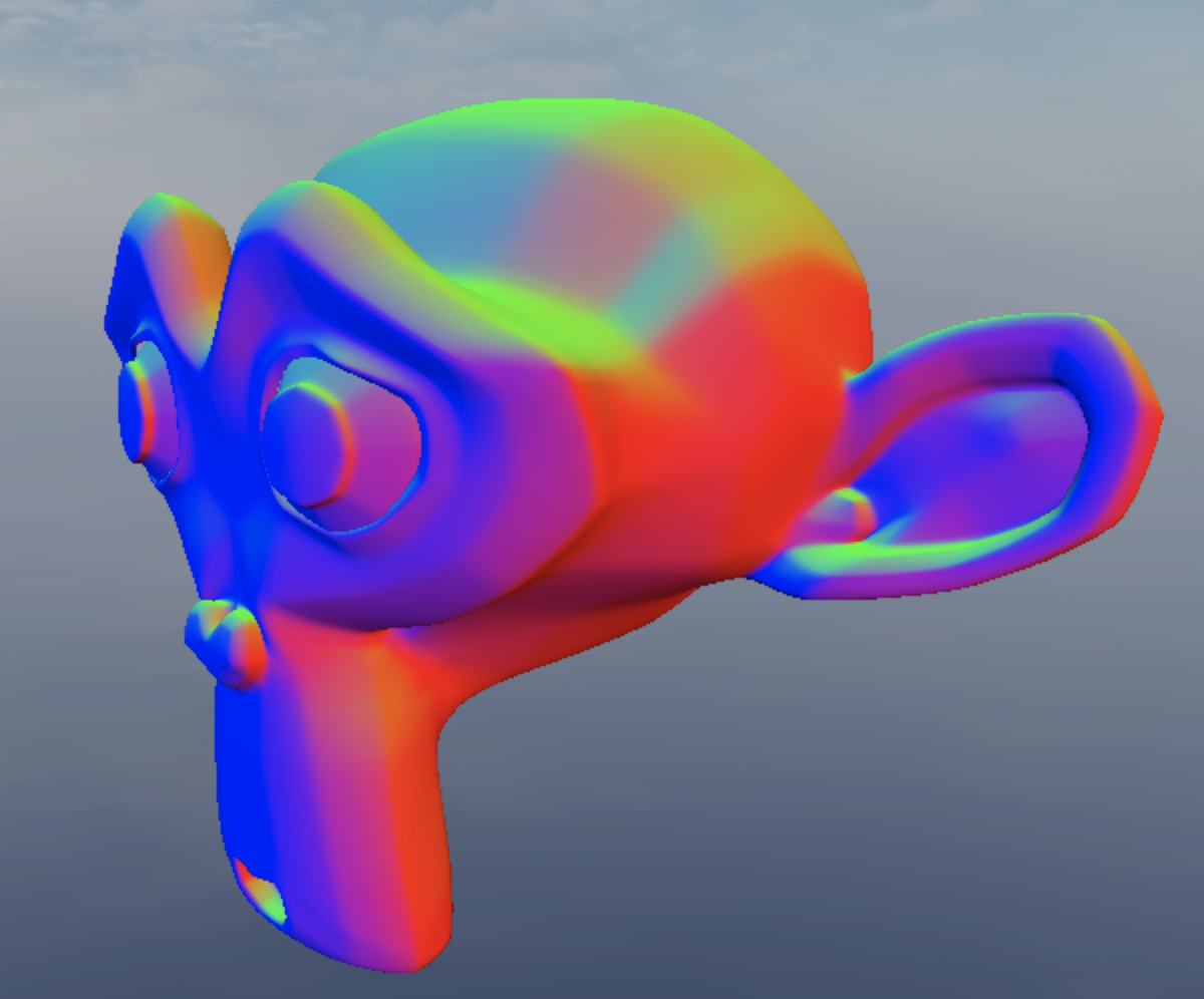 를 생각했을때, 수잔(원숭이)의 정면(Z축)과 마주볼 수록 파란색, X,Y축도 마찬가지로 색상값을 나타내는것을 볼 수 있습니다.